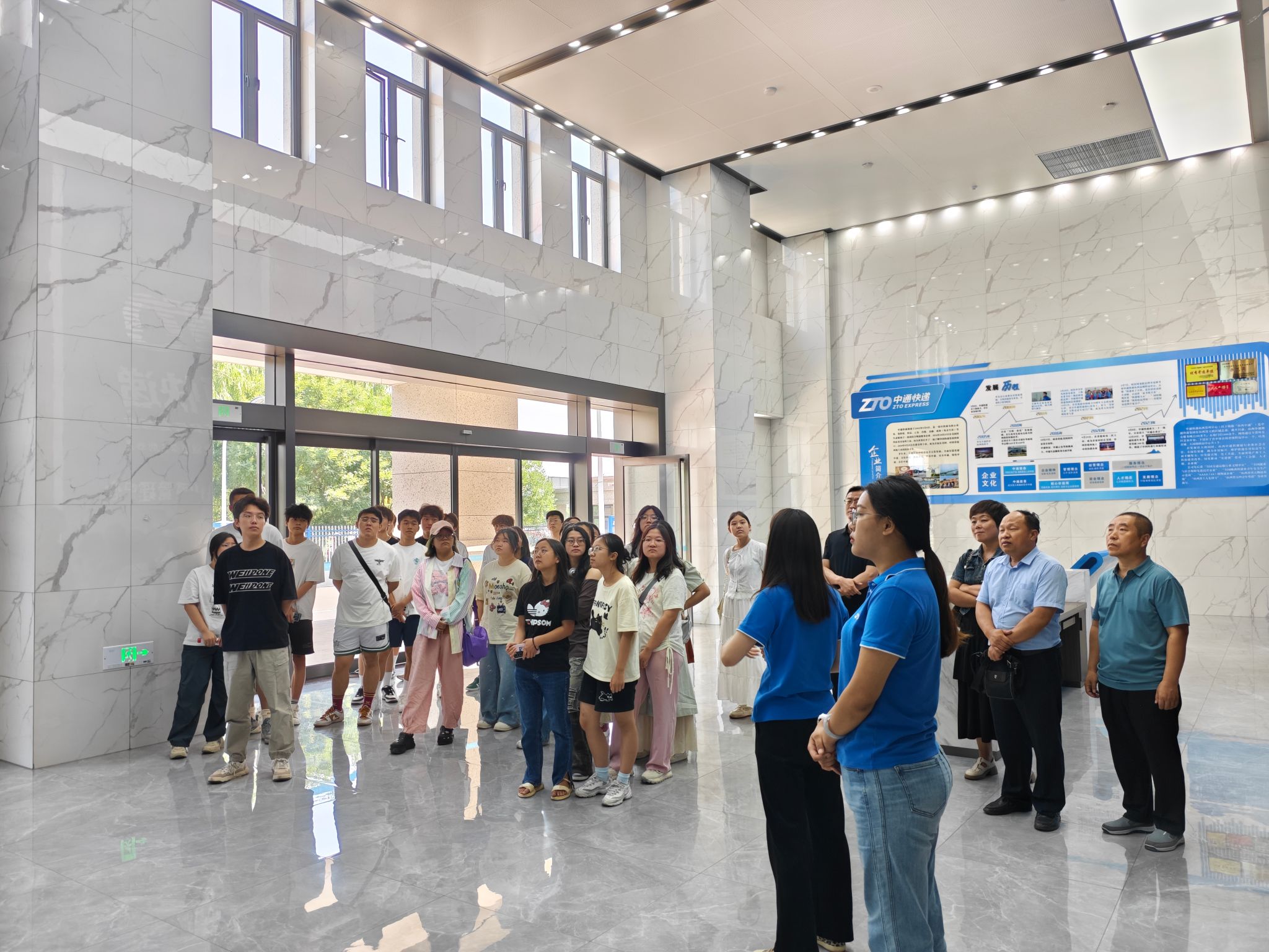 活动开始,参访师生在赵瑞林的陪同下参观了位于天禧物流附近的中通电商快递产业园。中通公司员工对电商产业园区的功能布局,自动化分拣系统等进行了详细讲解。现代化的工作场景,让师生们深刻感受到科技对物流行业效率提升的重要作用。