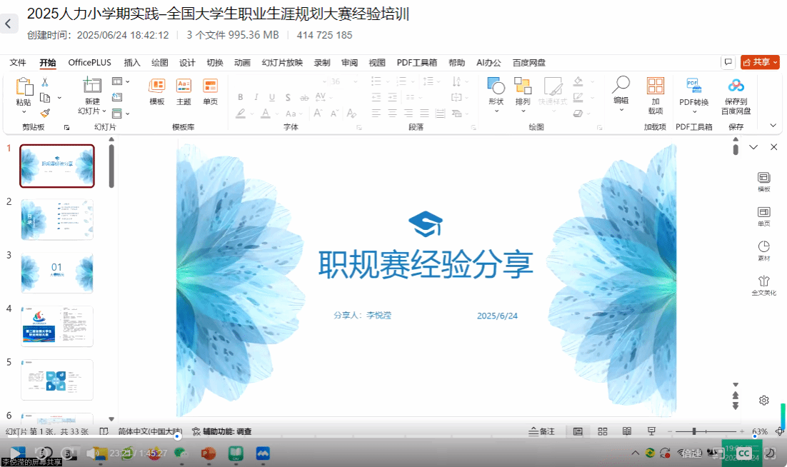 6月24日至25日,人力资源管理教研室邀请了第二届职业规划大赛本科生就业赛道省赛银奖获得者、经贸外语学院李悦滢同学,面向100余名同学举办了两场精彩的经验分享会。刘美琳、陈虹两位老师主持了分享会。