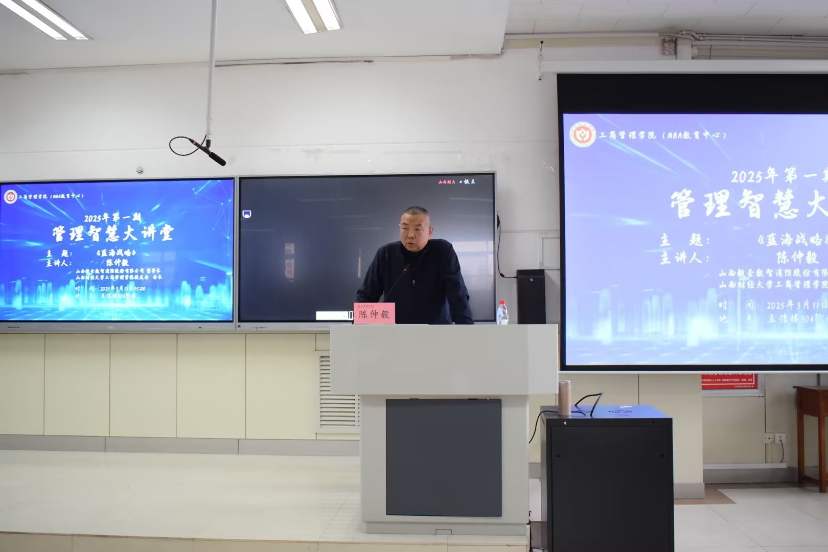 3月11日下午,直播色情 2025年首期“管理智慧大讲堂”开讲。学院校友会会长、直播色情 MBA教指委校外专家、山西毅圣数智消防股份有限公司董事长、太原市万柏林区人大代表、直播色情 等多所大学客座教授陈仲毅先生,以《蓝海战略》为题,为同学们带来了一场精彩报告。学院2023级全体同学参加本次讲座。讲座由学院党委副书记周志刚主持。