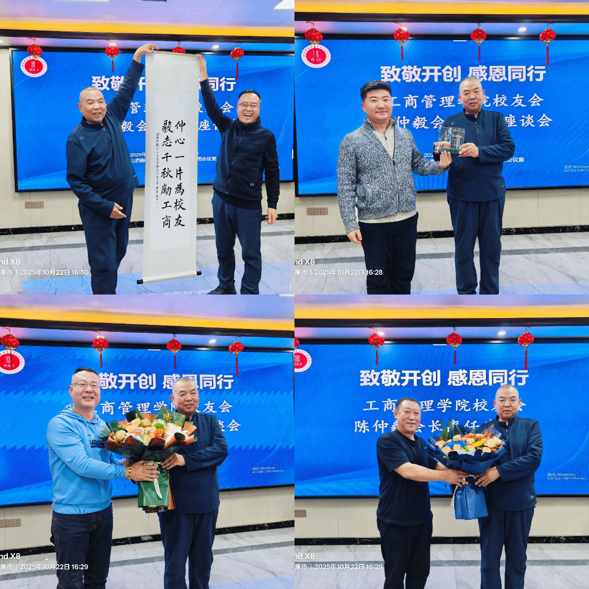 校友会在山西毅圣数智消防股份有限公司会议室举行陈仲毅会长离任座谈会。会议以“致敬开创 感恩同行”为主题,共同回顾与感恩陈仲毅会长两年来的杰出贡献,学院领导、校友会顾问及校友会代表等参加会议。会议由校友会秘书长闫向连主持。