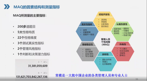 本场讲座特别邀请到美国奥本大学心理系教授范津砚博士线上讲授MBA学生自我认知,并集体解读MAQ测试报告。范教授在人事选拔、新员工入职培训和社会化过程、跨文化适应和培训等研究领域成果颇丰。讲座中,范教授分别从项目背景和人才测评的基础知识、MAQ报告结构、MAQ22个维度释义、个人发展计划四个方面进行详尽分析,并运用大五人格模型等工具,帮助MBA学生进一步了解自己的管理风格、判断和决策潜力,就“确定发展方向”“分析自己的优劣势”等问题详细分享了发展策略,鼓励大家根据当前岗位和将来职业发展目标制定和执行个人发展计划,实现有效的个人职业发展。