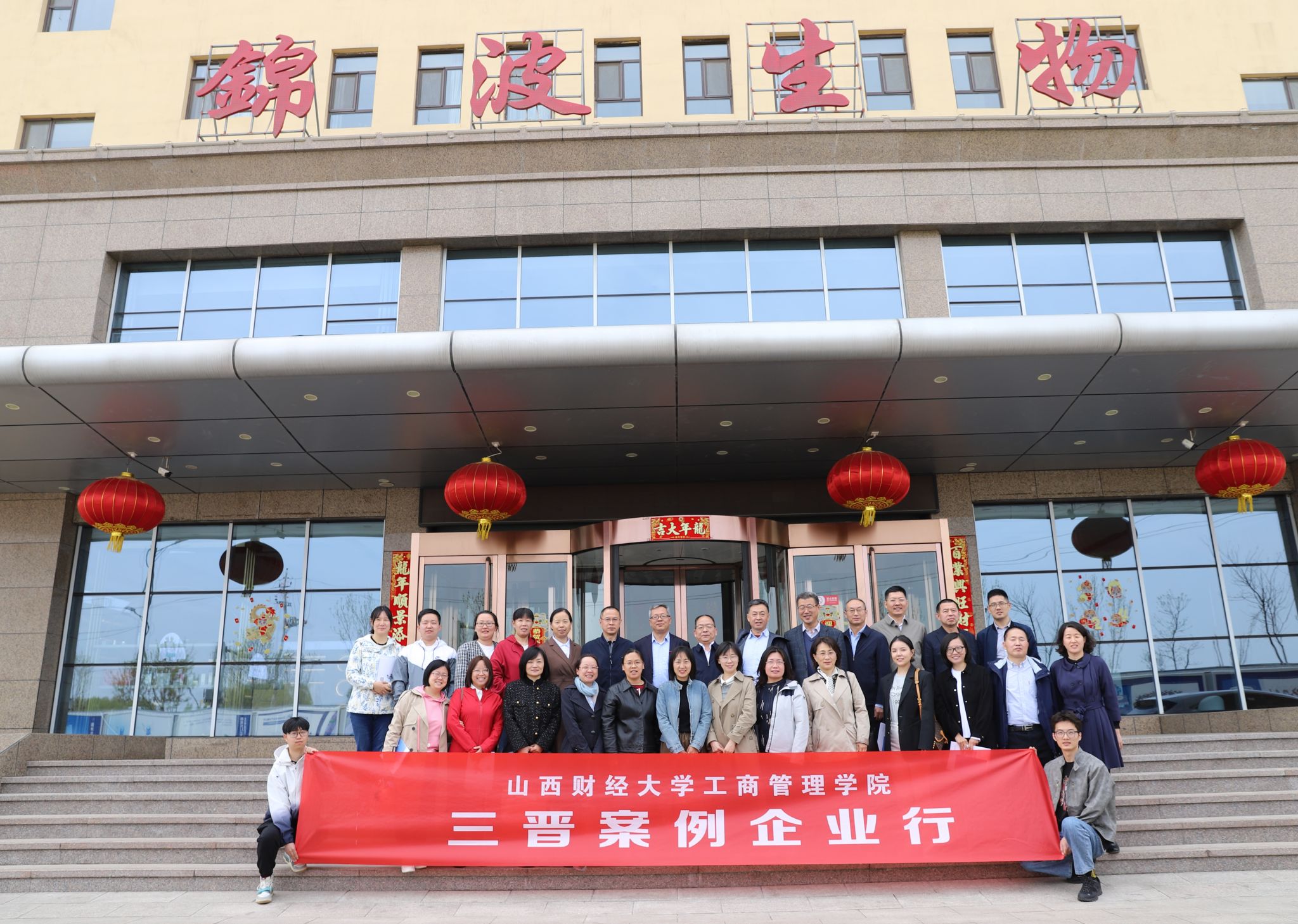 领导班子全体成员,MBA教指委校外专家,教师代表与学生代表30余人走进山西锦波生物医药股份有限公司(以下简称“锦波生物”),并与公司高管团队进行了深入交流。