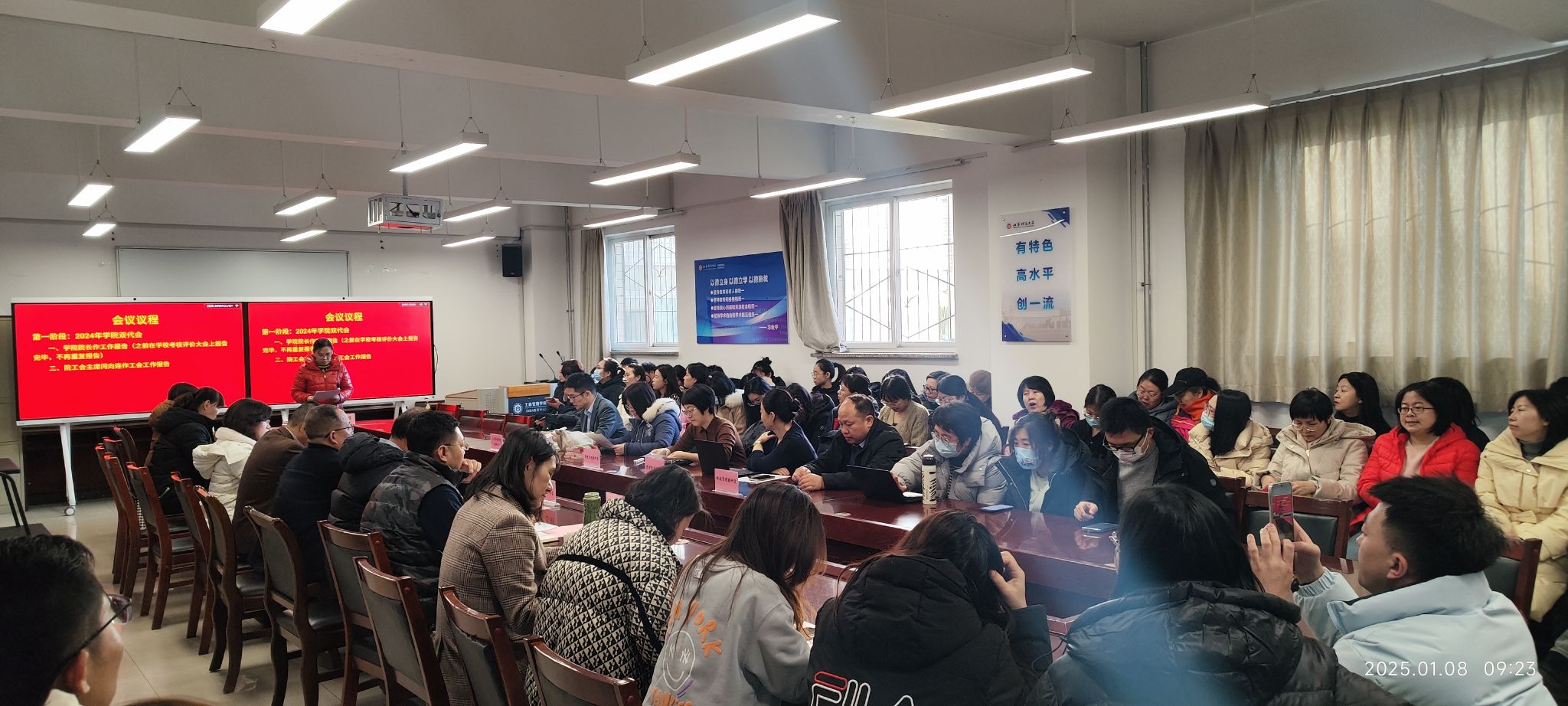 卫虎林院长在会上强调,2024年,我们在党建思政、人才培养、科学研究、社会服务等方面,都取得了一定的成绩,学院高质量发展迈出坚实步伐。特别是圆满完成了本科教育教学审核评估任务,OBE理念深入人心,为下一步发展奠定了坚实基础。2025年是“十四五”规划的收官之年,是“十五五”规划的谋篇布局之年,学院确定了以人工智能赋能教育教学五大工程,要重点从以下五个方面开展工作:一是坚守本科教育阵地。特别要加强对近五年入职年轻博士教学能力提升的培养;本科教育教学的整改工作要继续坚持OBE理念,把本次审核评估形成的一整套好的做法坚持下去,通过两年整改后迎接新一轮评估,同时继续做好毕业生就业工作;二是坚持以学科建设为龙头。学科建设的核心是人才,标志是成果。我们要坚持目标导向、问题导向和需求导向,组织团队、确定选题,开展有组织的攻关,出标志性成果。及时及早关注地方“十五五”规划的研究;三是坚持扎根山西,深化“五位一体”案例平台模式建设。做好“优秀校友企业行”、“三晋案例企业行”、“新晋商与特色专业镇高质量发展调研行”、组织各项专业赛事、小学期社会实践等;四是充分发挥两个校友会的作用,拓展办学资源;五是要深入总结办学以来所形成的学院文化,以学院文化来做品牌商学院。比如新生家长座谈会、开学典礼、迎新文艺会班、毕业典礼,教职工重大突发事故与疾病慰问、家中添丁慰问、老人去世安慰、教师光荣退休仪式、元旦联欢晚会等。要以文化凝聚人心,使学院真正成为一个和谐温暖的大家庭。
