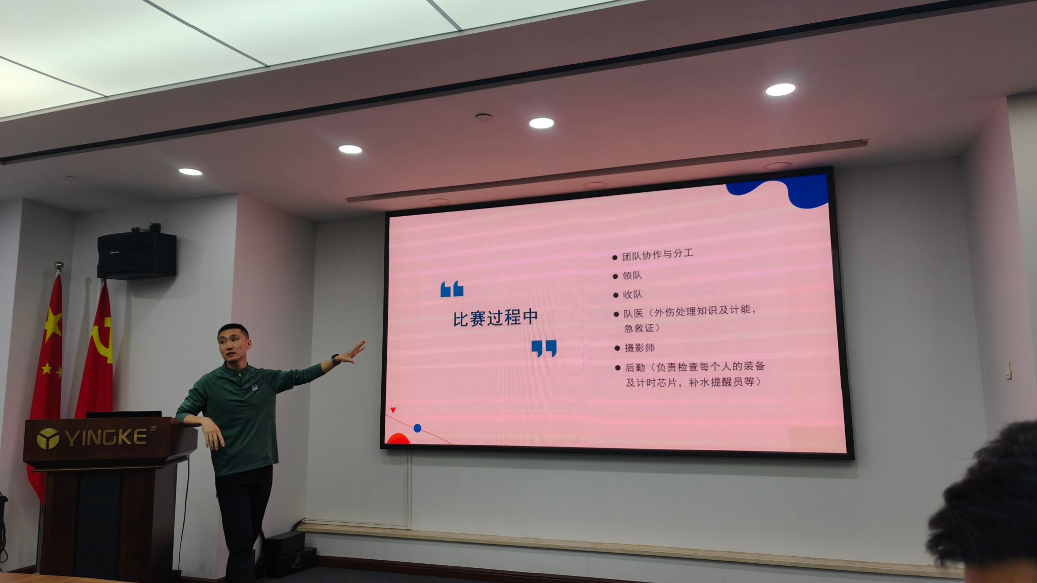 2018级MBA毕业生,国家一级社会体育指导员、马拉松国家二级运动员、太原市铁人三项运动协会会长马强担任总指导,并对赛事内容、奖项设置、赛事准备、必备装备进行讲解。这位曾完成八百流沙极限越野赛的资深跑者,将十年户外经验注入团队管理。“真正的对手不是沙漠,而是我们的认知盲区”马强指导总结道,“我希望每一位队员都能够珍惜这次机会,发挥自己的专业优势,为团队贡献自己的力量。我们相信,在大家的共同努力下,我们一定能够在亚沙赛上取得优异的成绩!”。随后太原理工大学经济与管理学院党委副书记杨振东结合自身多年的户外及参赛经验向两校师生传授了沙漠越野的经验,并希望两校队伍能团结一致,作为山西首次亮相的队伍出光出彩。