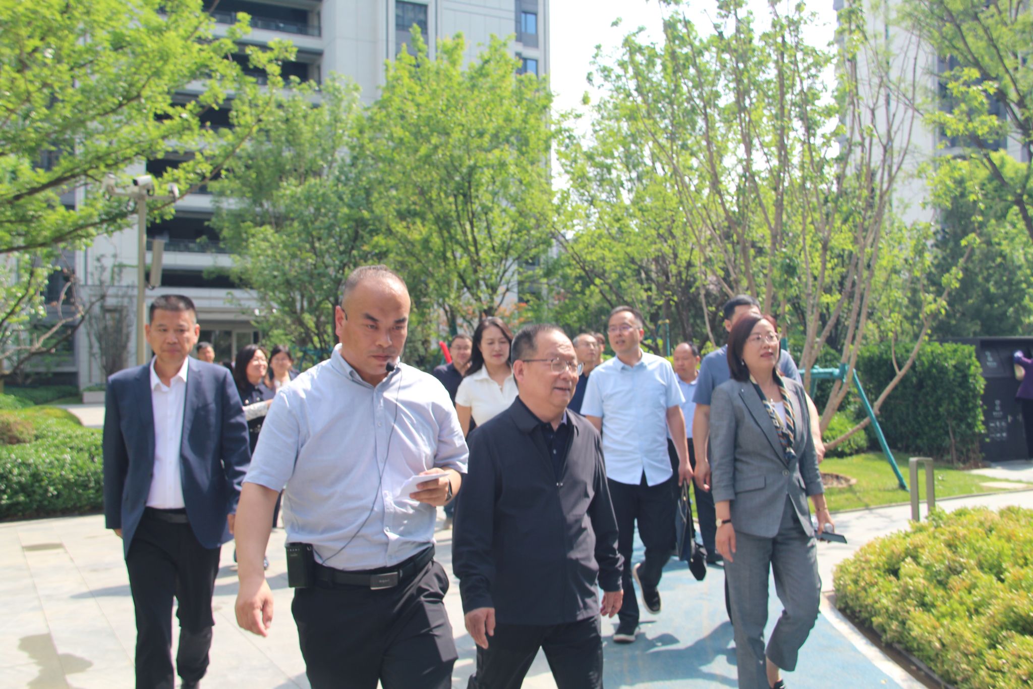 在易道生态总经理冯遵刚陪同下,学院一行首先参观了其标杆项目保利天珺景观工程。该项目通过“方与圆”的几何语言、水台叠瀑景观及树影停留空间等细节,充分展现了公司追求“细致、精致、极致”项目设计理念,给参访团队留下了深刻印象。