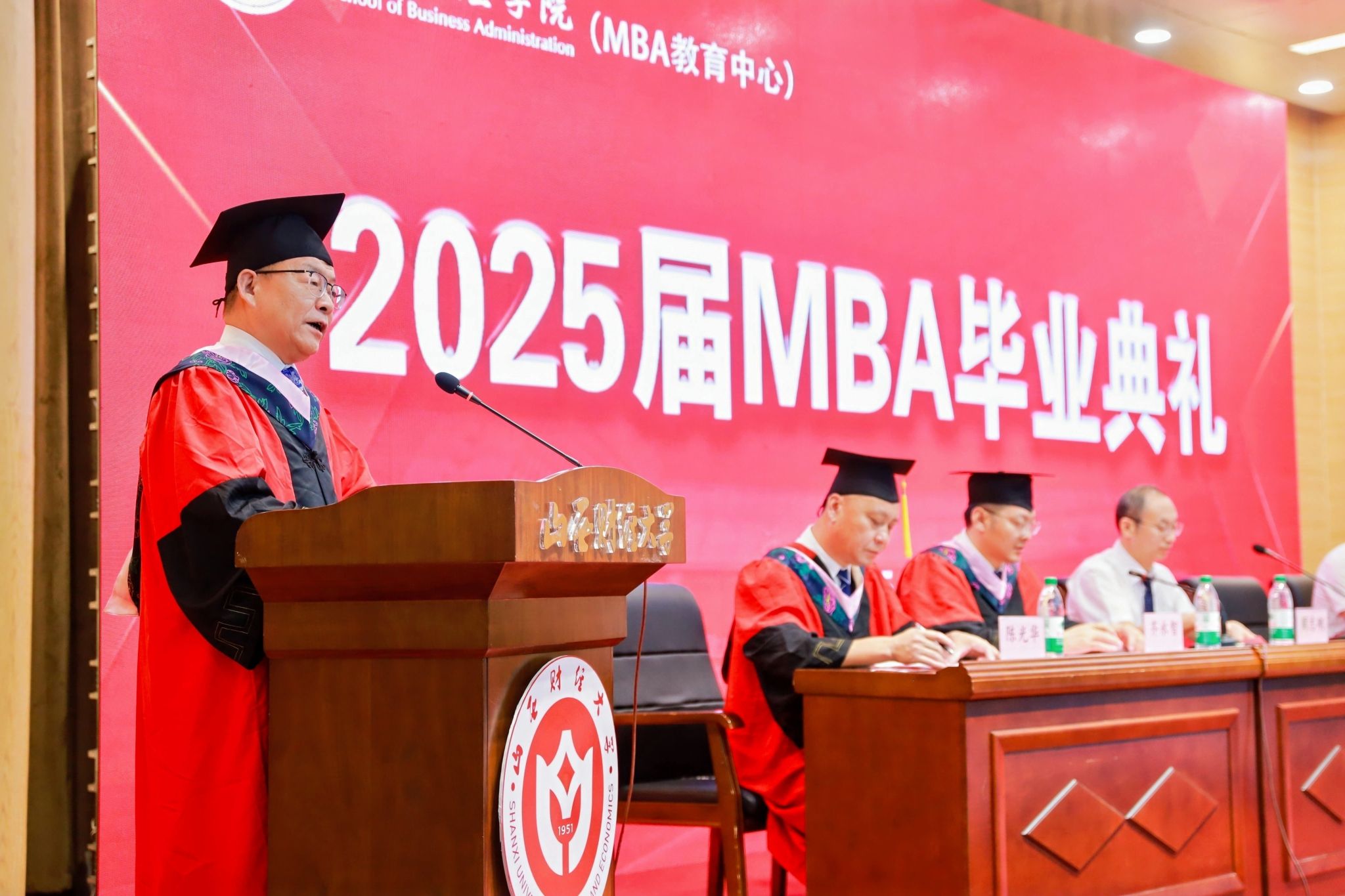 随后,学院党委副书记周志刚宣读2025届MBA毕业生名单,副院长薛继东宣读优秀毕业生名单,副院长齐永智宣读校友联络员聘任决定。校友代表、教师代表、学生代表依次发言。