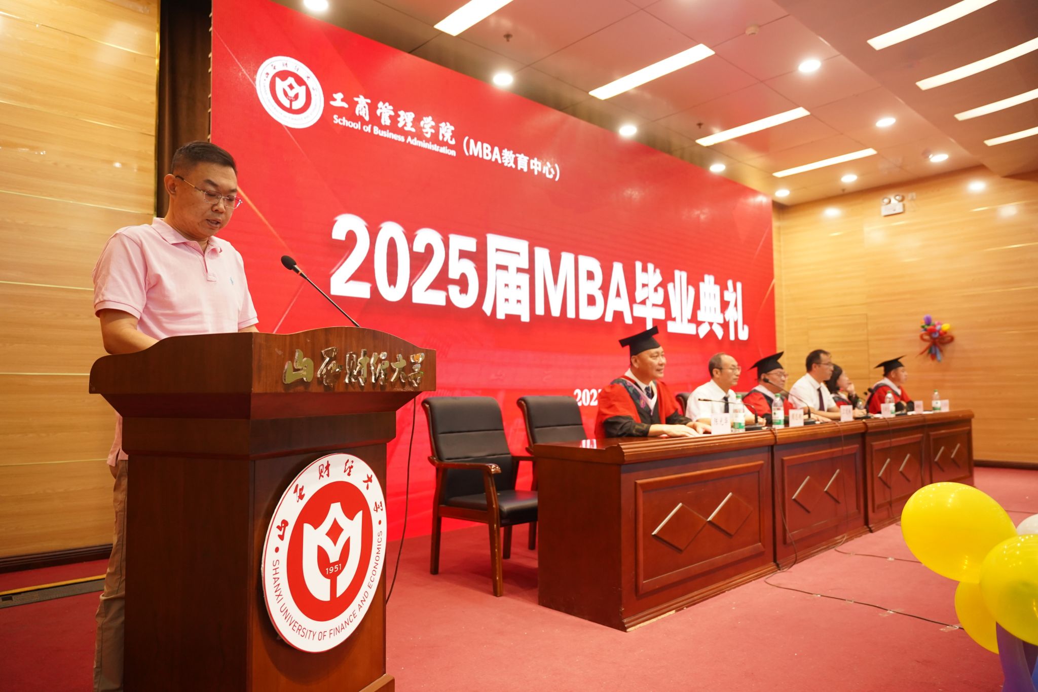 MBA教育项目二十五载发展历程中在人才培养、学科建设、服务社会等方面的成绩,向毕业生提出四点期望:一是以晋商精神立心,做转型发展开拓者;二是以校训精神立身,做终身学习践行者;三是以责任担当立行,做社会价值创造者;四是以家国情怀立命,做新时代奋斗者。最后,卫院长深情嘱托毕业生铭记“只要想念就会相见”的约定,祝愿大家在工作中劈波斩浪、勇毅前行。