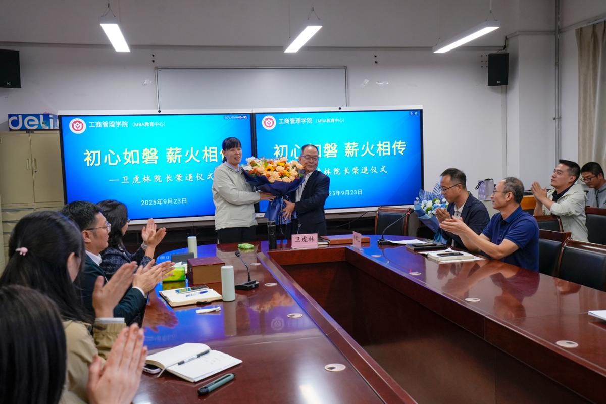 在会议室举行了主题为“初心如磐 薪火相传”教师荣退仪式,为卫虎林院长送上学院的深切祝福和诚挚问候,致敬他为学院发展倾注的心血与智慧。学院领导班子全体成员、全体教职工等参加活动。会议由学院党委书记李群生主持。