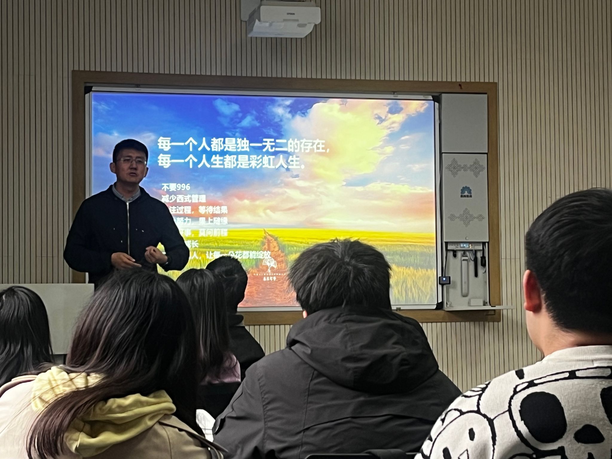 4月3日下午,水木年华信息技术有限公司创始人刘强作为《战略管理》校企共建单位主讲教师,走进2022级工商管理专业本科生的《战略管理》课堂,以“做一个幸福的创业者”为题开展主题讲座,并与现场师生进行了交流互动。