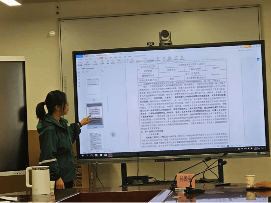 刘美琳老师与樊贵莲老师分别分享了各自的课题申报书,就写作过程中的困惑、问题与大家进行交流。孙国强教授就课题标题的表述、研究背景的写作、研究思路的梳理、经费预算的设计等为两位老师的申报书提出了宝贵的修改意见。