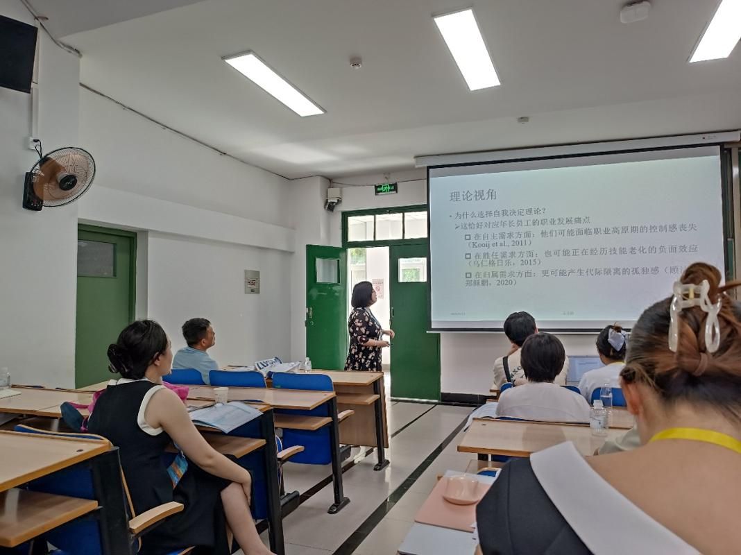 教师对人工智能与管理心理学前沿动态的认知深度与广度,为凝练研究方向和提升科研水平提供了宝贵的启发与思路。王玉娟老师积极交流汇报研究成果并获得建设性反馈,这不仅有助于其个人研究的深化,也为推动直播色情