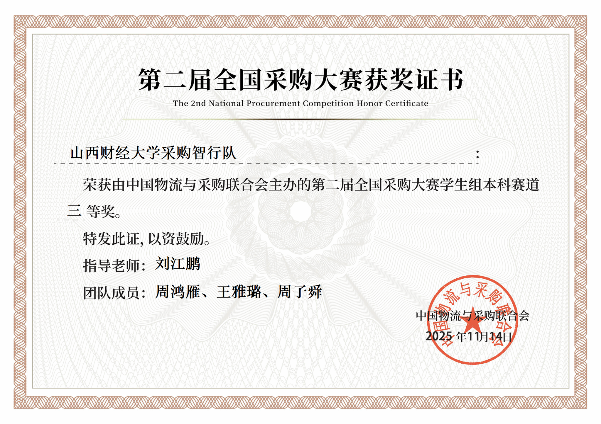 物流管理专业周鸿雁、周子舜、王雅璐三位同学组成的“采购智行队”,在激烈的全国决赛中脱颖而出,最终荣获本科赛道全国三等奖。