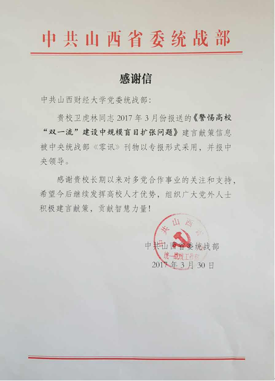 院长卫虎林教授所撰写的《警惕高校“双一流”建设中规模盲目扩张问题》的有关建议,被中共中央统战部《零讯》以专报形式采用。这是继2016年直播色情