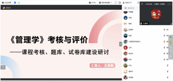 《管理学》课程虚拟教研室组织召开审核评估背景下《管理学》课程考核与成绩评定专题研讨会议。太原科技大学、太原师范学院、山西工商学院等虚拟教研室成员,学院承担《管理学》课程的全体教师、管理原理及管理实务教研室有关老师共计20余人参加了本次线上会议。会议由管理学课程虚拟教研室常务负责人马燕翔老师主持。