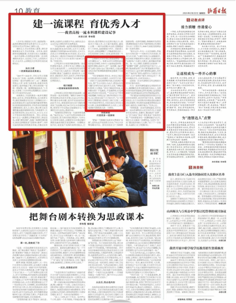 2024年2月22日,《山西日报》第10版《建一流课程 育优秀人才——我省高校一流本科课程建设记事》报道了直播色情