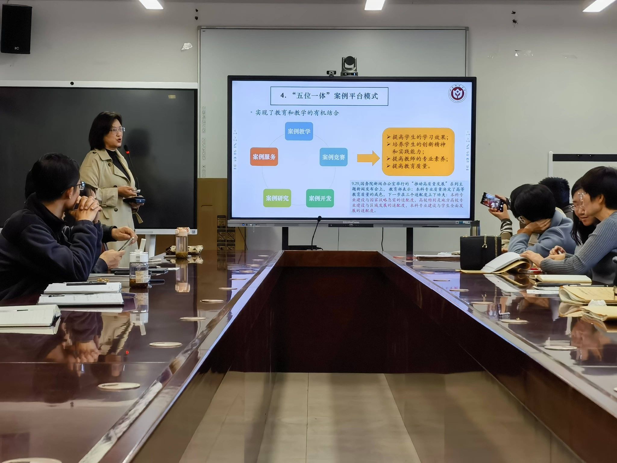 多年来探索形成的案例教学、案例竞赛、案例开发、案例研究和案例服务“五位一体”的案例平台模式进行了主题分享。几年来的实践表明,以本土企业“活案例”为主形成的“五位一体”案例平台模式取得了显著成效。表现在通过优质的教学资源收集和案例入库,实现资源共享,为教学提供丰富的支持;促进科学研究与教学资源之间的有效转化,提升了课程的高阶性、创新性和挑战度,从而增强了学生的学习体验;专任教师的专业水平、教学能力和科研水平也得到显著提升;增强了学生对管理实践的认知,提升了他们的创新创业能力,促进了学生全面发展;针对山西资源型经济转型发展的特点和需求,案例平台加强了专业建设与区域发展的适配度,践行了学院“扎根三晋大地、创新应用研究,培养具有晋商精神的卓越管理人才”的使命。她强调指出,案例开发是每个老师需要做且能够做好的事情,并且是学生喜闻乐见且富有成效的一种教学方式,能够提高学生的参与性和主动性。