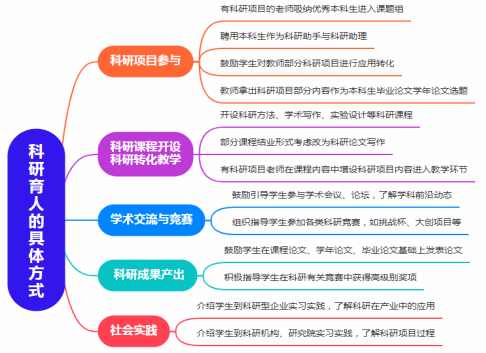 何为育人?何为科研育人?齐永智教授进行分项解读。他指出育人的核心是促进学生知识、能力、品德的全面发展,培养学生成为一个全面的人。科研育人的核心目的是培养学生创新精神、实践能力、科研素养。对标审核评估评价体系,科研育人主要体现在培养目标与方案、教学过程与质量、师资队伍、学生发展,质量保障等五个主要方面。具体操作实施方式则体现在科研项目参与度、科研课程开设及科研转化教学、学术交流与竞赛、科研成果产出、社会实践等方面。