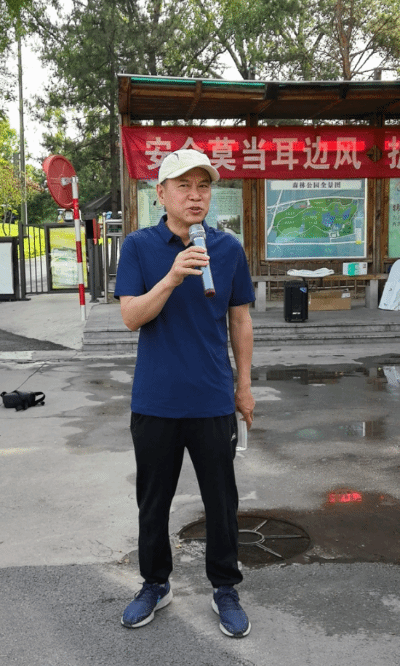 清晨七点多,校友和老师们便早早地来到森林公园集合,统一着装,师生们相聚到一起,相互问候,分外激动。