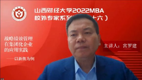 2022MBA校外专家系列讲座第十六期在“腾讯会议”平台圆满举办。新奥能源控股有限公司副总裁宫罗建带来了题为《战略绩效管理在集团化企业的应用实践——以新奥为例》的专题讲座,2022级MBA学员、部分MBA教师、MBA校友等300余人参加,本期讲座还得到MBAChina网站的同步转播。