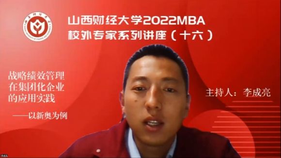本期讲座主持人——第十六届MBA联合会文体部副部长李成亮接着程老师以人生喻企业的说法指出,我们也可以借鉴战略绩效管理的理念来管理自己的学习、生活,制定自己的绩效管理体系,并不断砥砺前行。