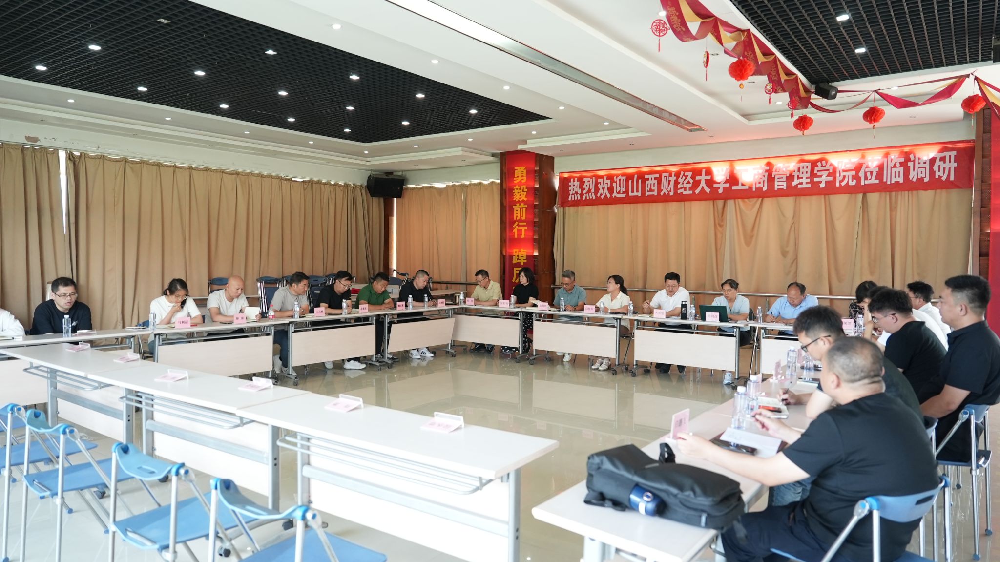 组织了第十一次“三晋案例企业行”主题活动。学院领导、教师代表及部分研究生等10余人走进山西智胜传媒科技股份有限公司(简称“智胜传媒”)和山西传喜货运有限公司(简称“传喜物流”),与董事长郭海明及34名中高层管理人员举行了座谈,旨在精准诊断智胜传媒、传喜物流管理瓶颈,为院企合作开展中高层管理干部研修班提供定制化培训依据。
