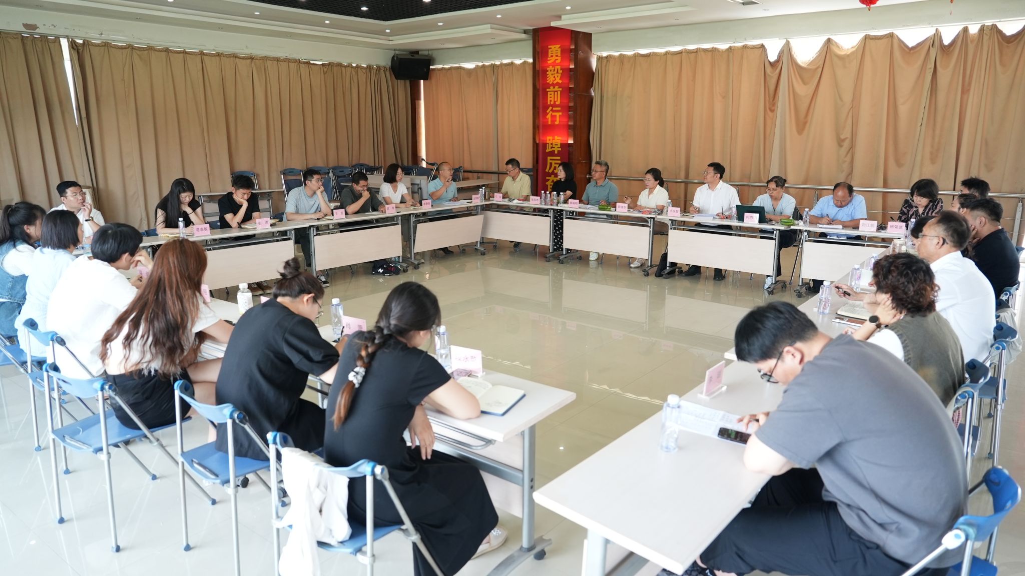 座谈会由董事长郭海明主持,采取分阶段研讨形式,分别和传喜物流与智胜传媒共34名管理人员展开深度对话。会议以问题为导向,通过半结构化研讨方式,系统梳理两家企业在发展中面临的突出问题。